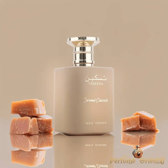 Taskeen Caramel Cascade de Paris Corner, Un parfum à la fois tendre et sophistiqué, pensé pour séduire les amoureux des senteurs sucrées et élégantes.
